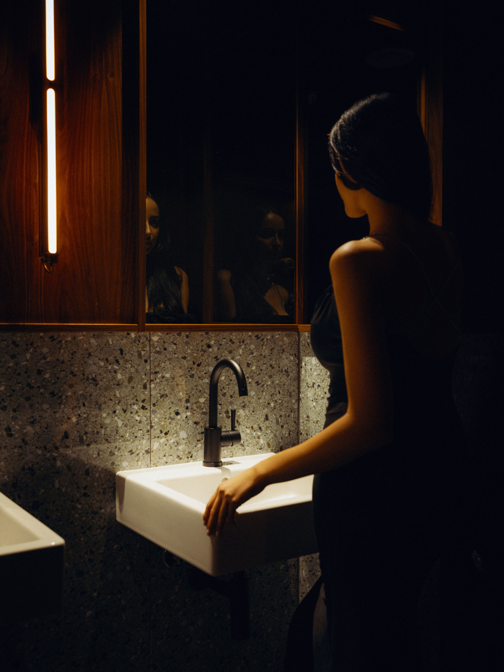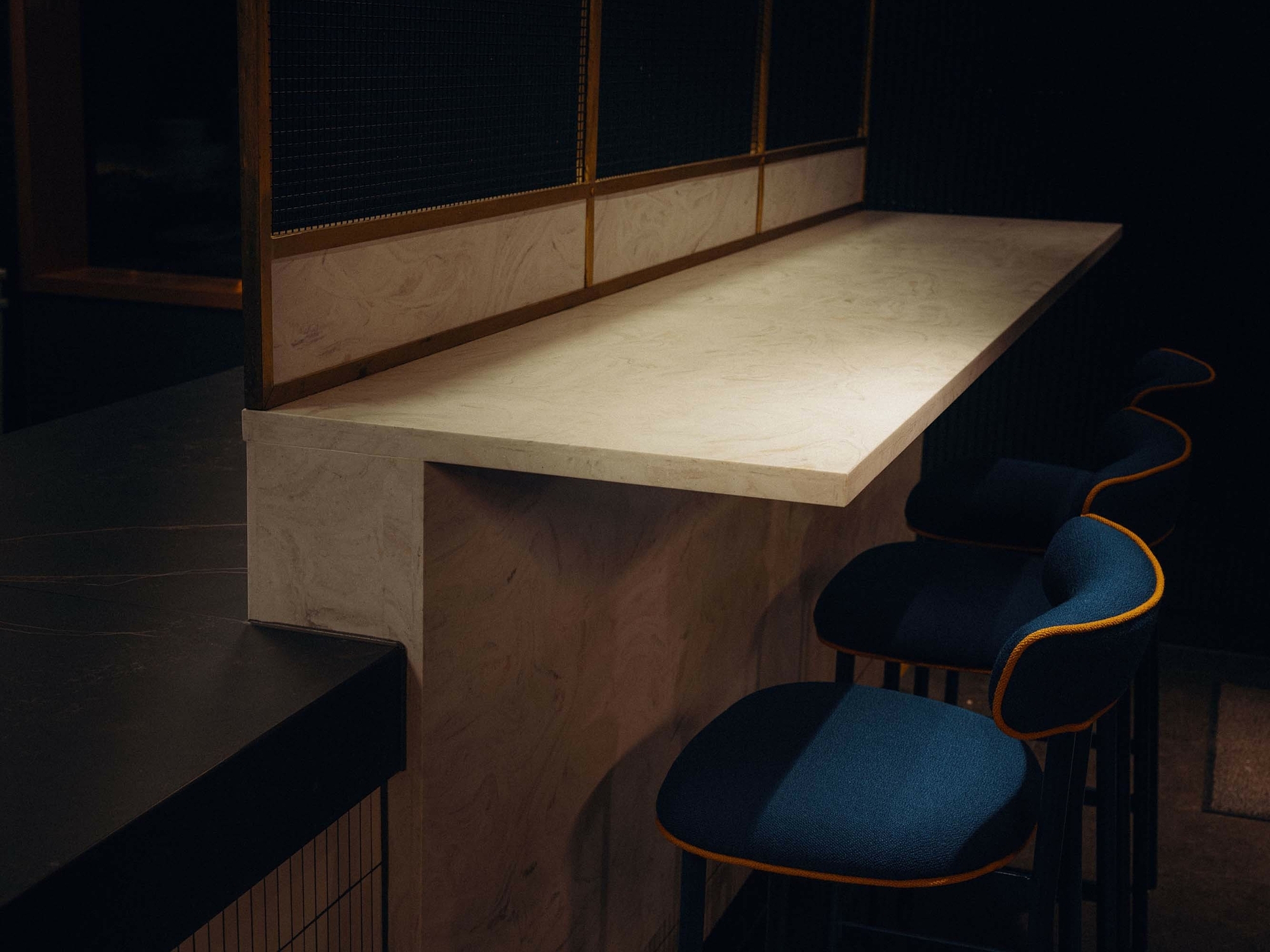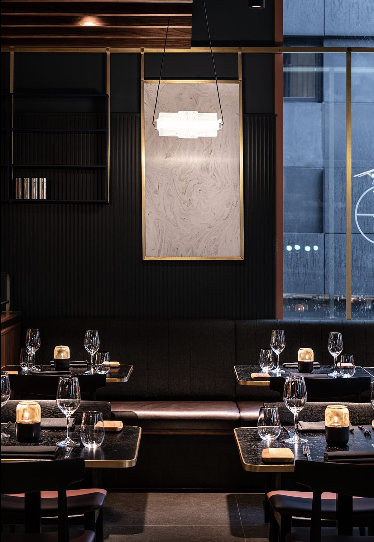 Edelmetaller, naturstein og skinn sender et nikk til den klassiske bistroen, som sammen skaper en sofistikert eleganse.