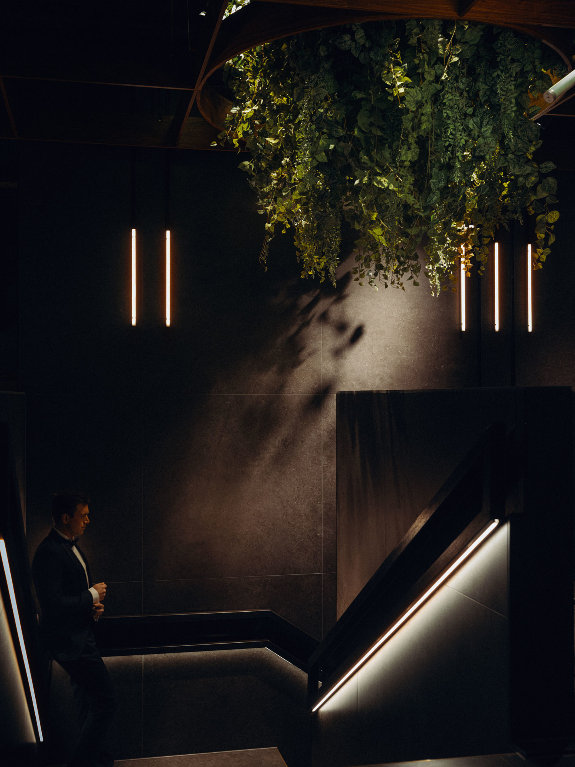 Store mørke flater, hvor lyset leder oss mot de viktige elementene.